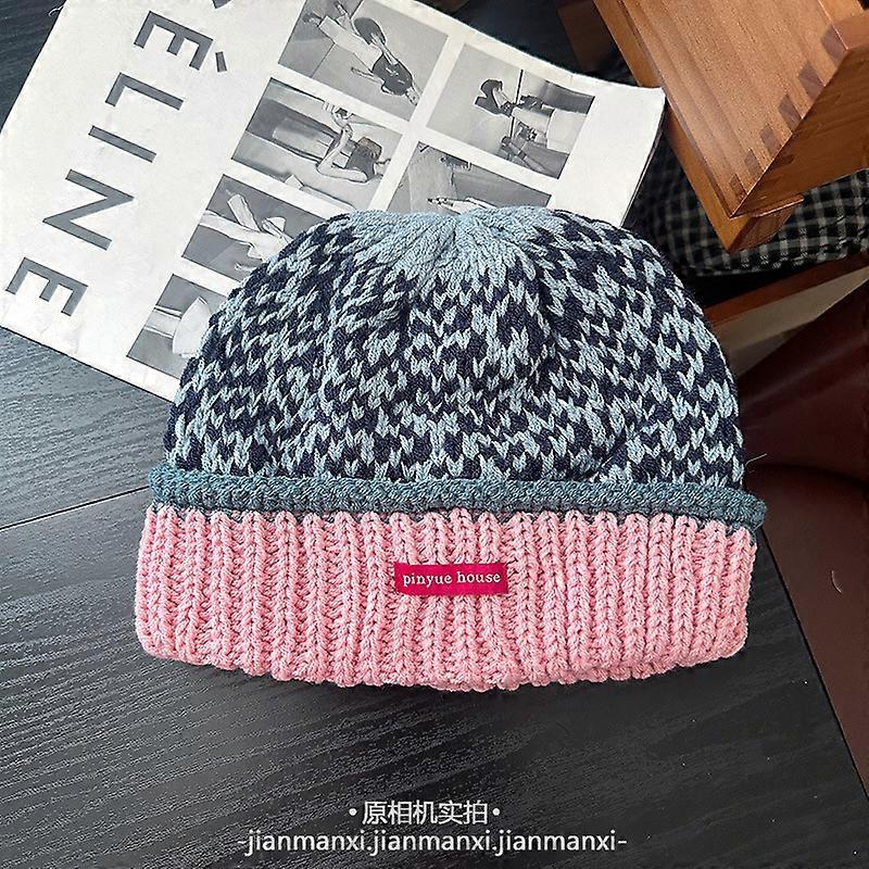 Parent-child Color Matching Knitted Beanie Hats Men Women Autumn Winter Warm Decorative Ear Protectors Wool Caps
