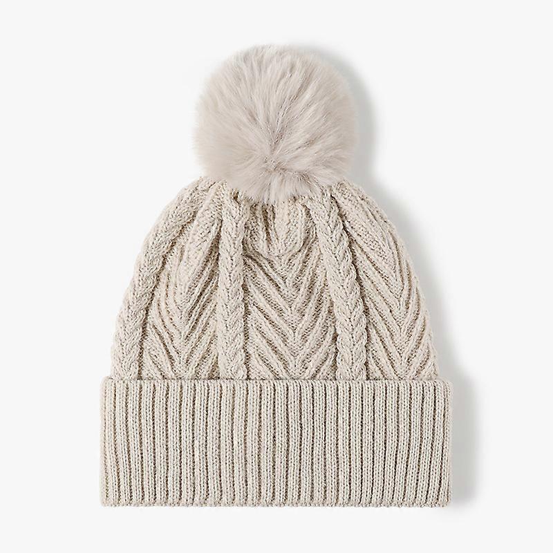 Autumn And Winter Thickened Jacquard Knit Hat With Fashion Pom-Pom For Women Ear Protection No-Brim Knitted Hat
