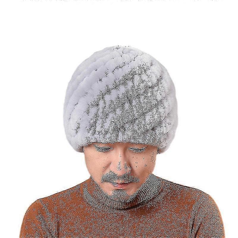Men's Rabbit Fur Hat Knitted Beanie Hat Furry Winter Cap Warm Soft Snow autumn and winter warm hat