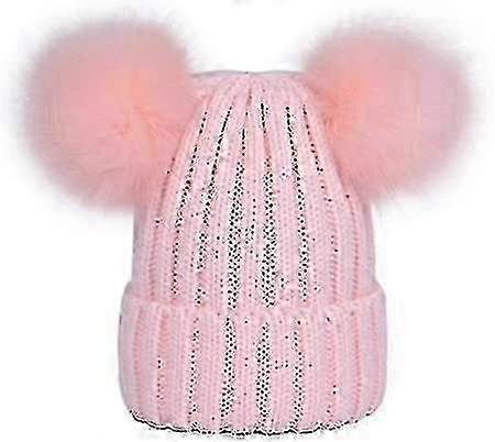Fur Bobble Hat Double Pom Pom Beanie Women's Autumn And Winter Korean Fashion Knitted Hat Double Ball Cap Imitation Fox Fur Woolen Hat