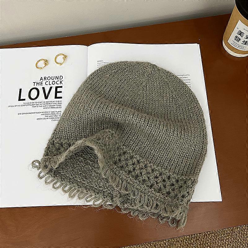 Old Rough Edge Thin Bag Beanie Cap Hollow Face Small Hat Atmosphere Knitted Fashion Versatile Cold Hat Tide