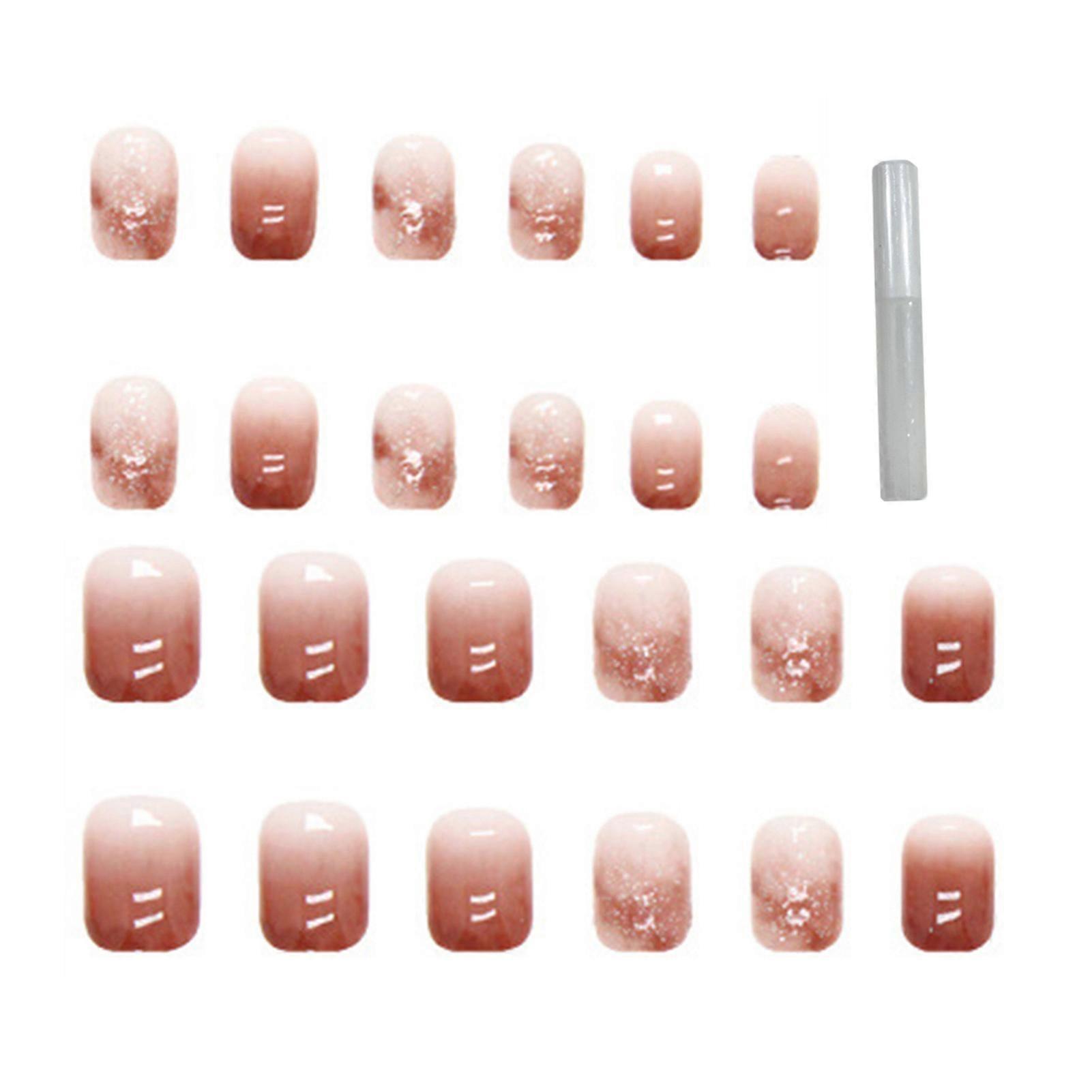 Effortless Gradient False Nail Quick Easy Red Brown Manicure Short Style Minimalistic Elegant Fake Nail