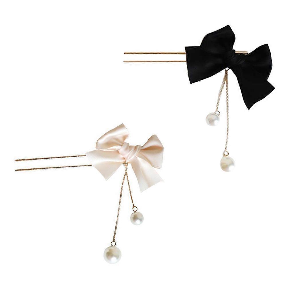Pearls Tassel Hair Stick Bow Clip Fork for Women 4Pcs Pack