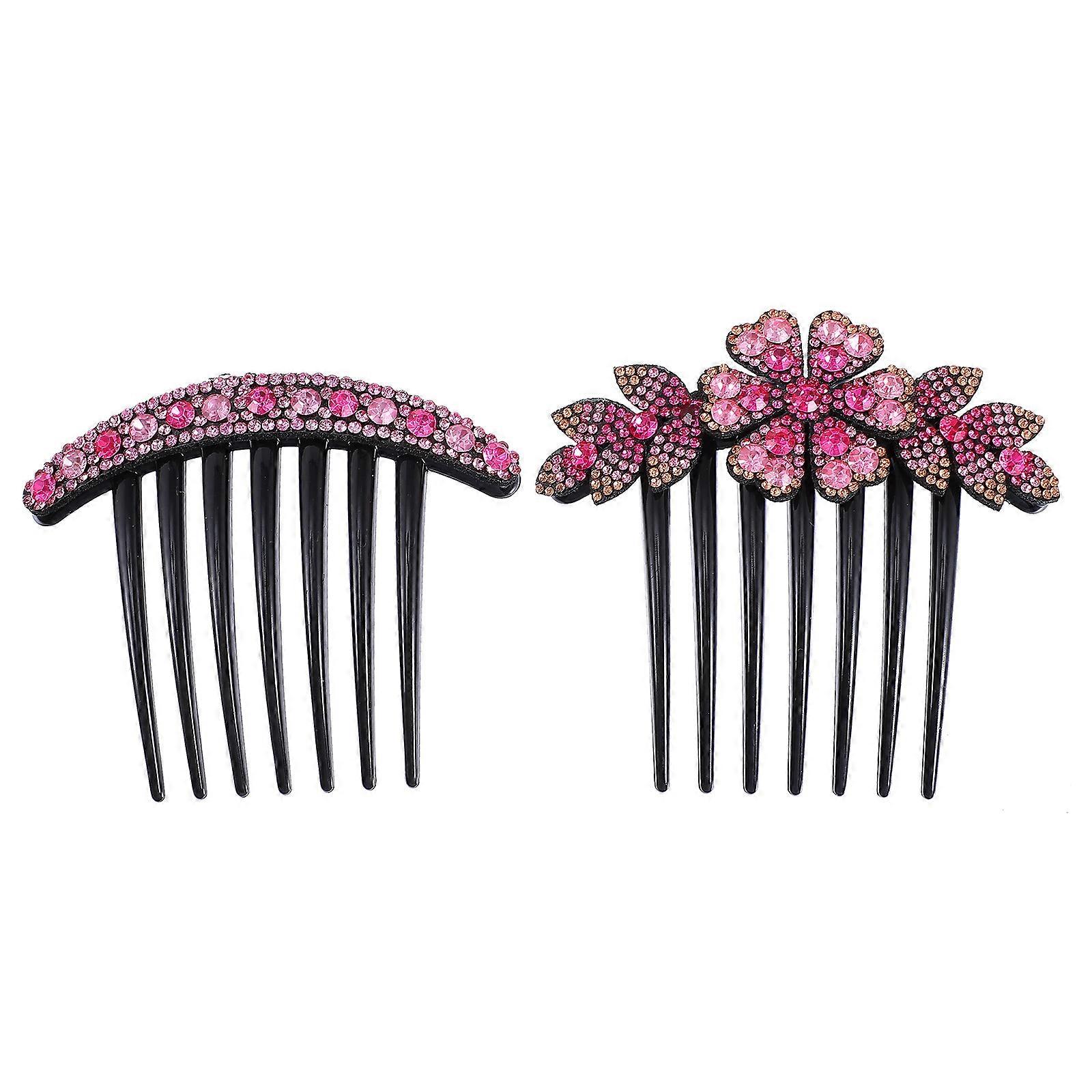 Rhinestone Hairpin Flower Clip for Women 2Pcs Stylish Pink Hair Accessories