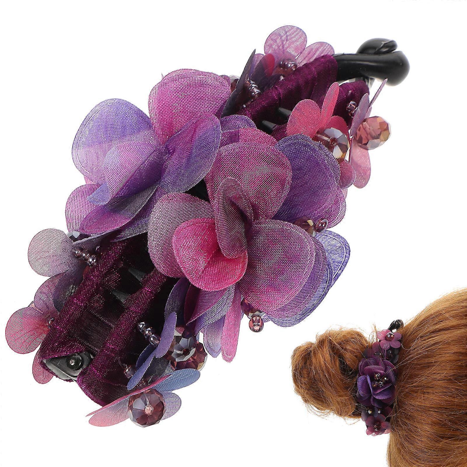 Secure and Comfortable Long Hair Clip with Elegant Fabric Flowers