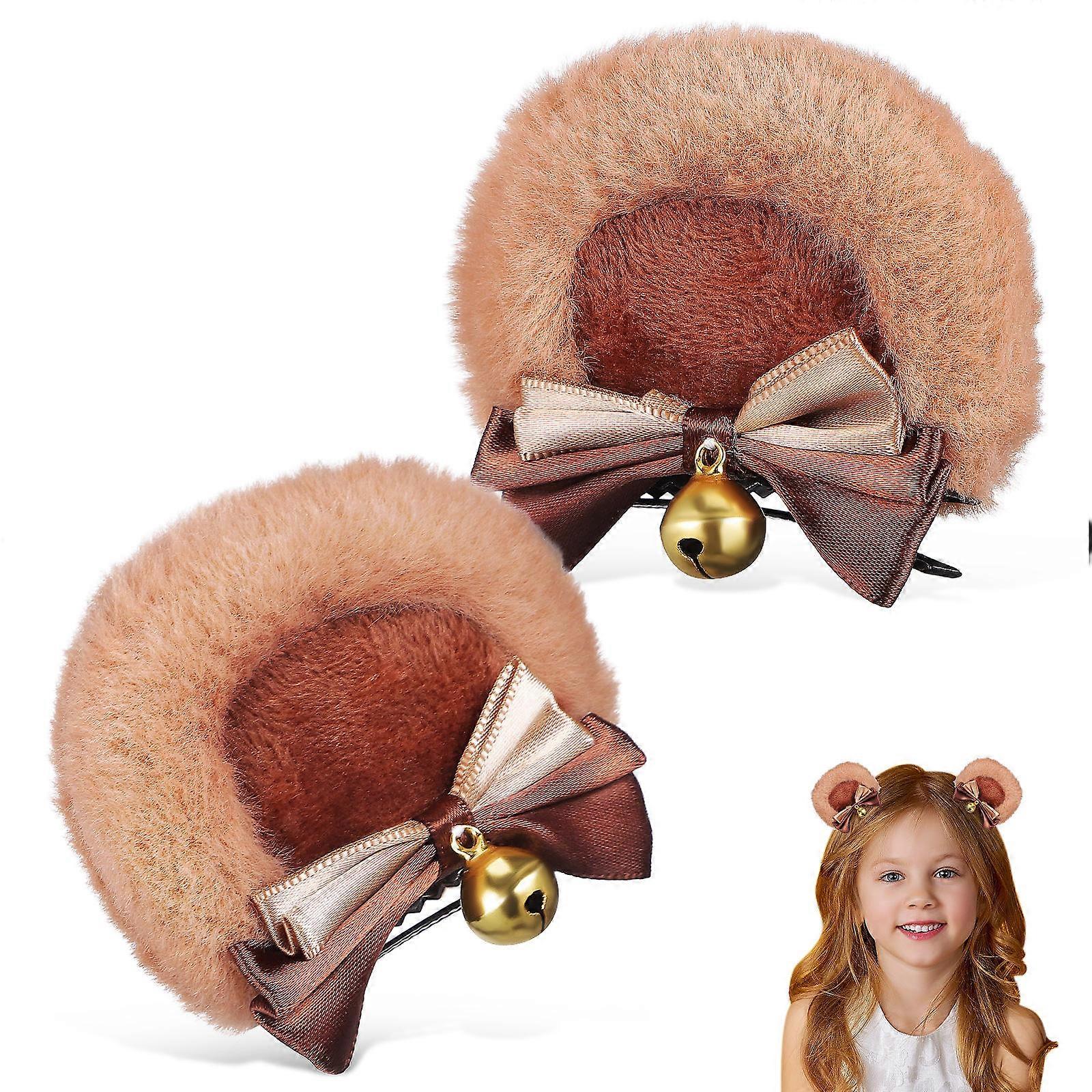 Bear Ears Hair Clips for Cosplay and Decoration 3Pairs with Bow