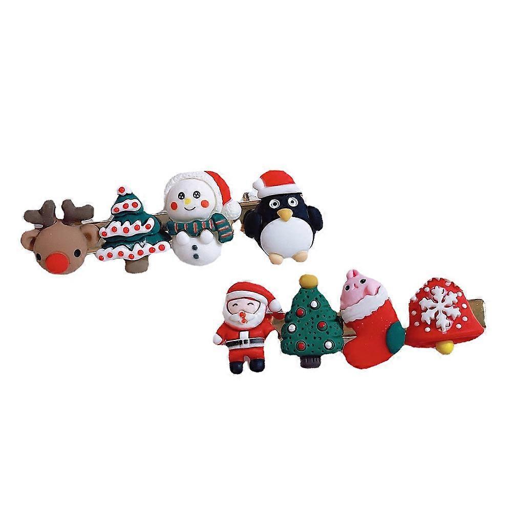 Christmas Hair Clips for Kids with Crown and Antlers Design 2Pcs Resin Assorted Color