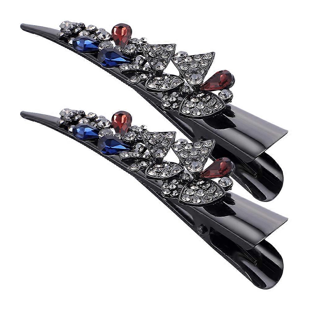 Bling Rhinestone Hair Clips for Decoration with Metal and Rhinestone 2 Pcs Multi Color
