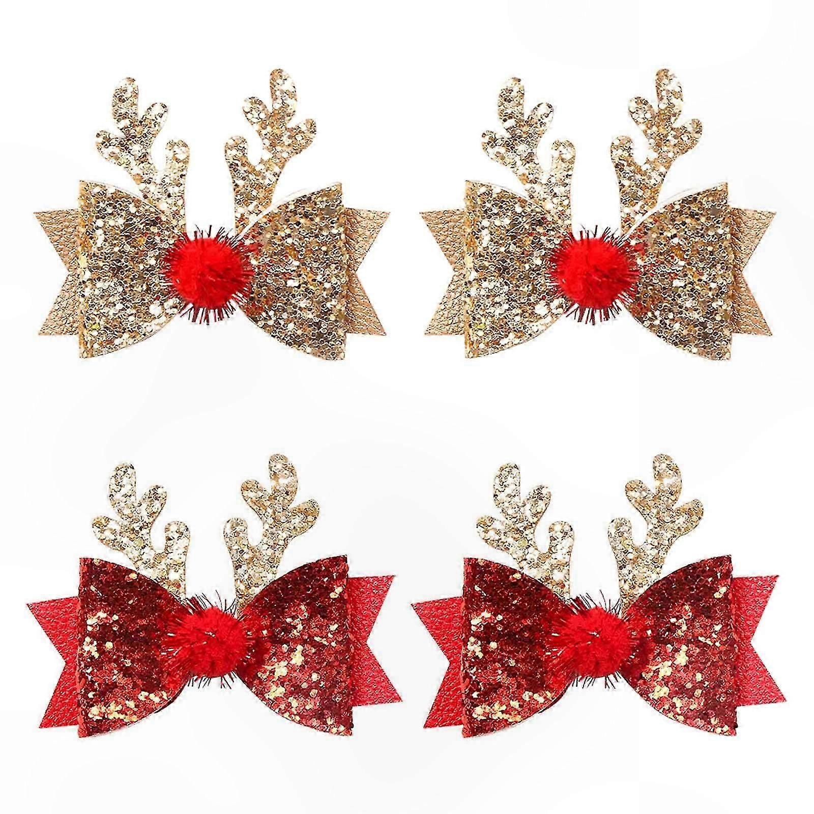 Festive Antler Bow Hair Clips with Glitter for Girls Christmas Headwear Accessories