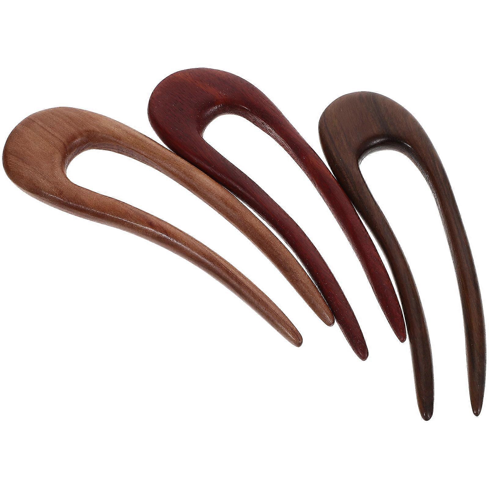 Retro Wooden Hairpins U Shaped Hairpin Styling 3Pcs