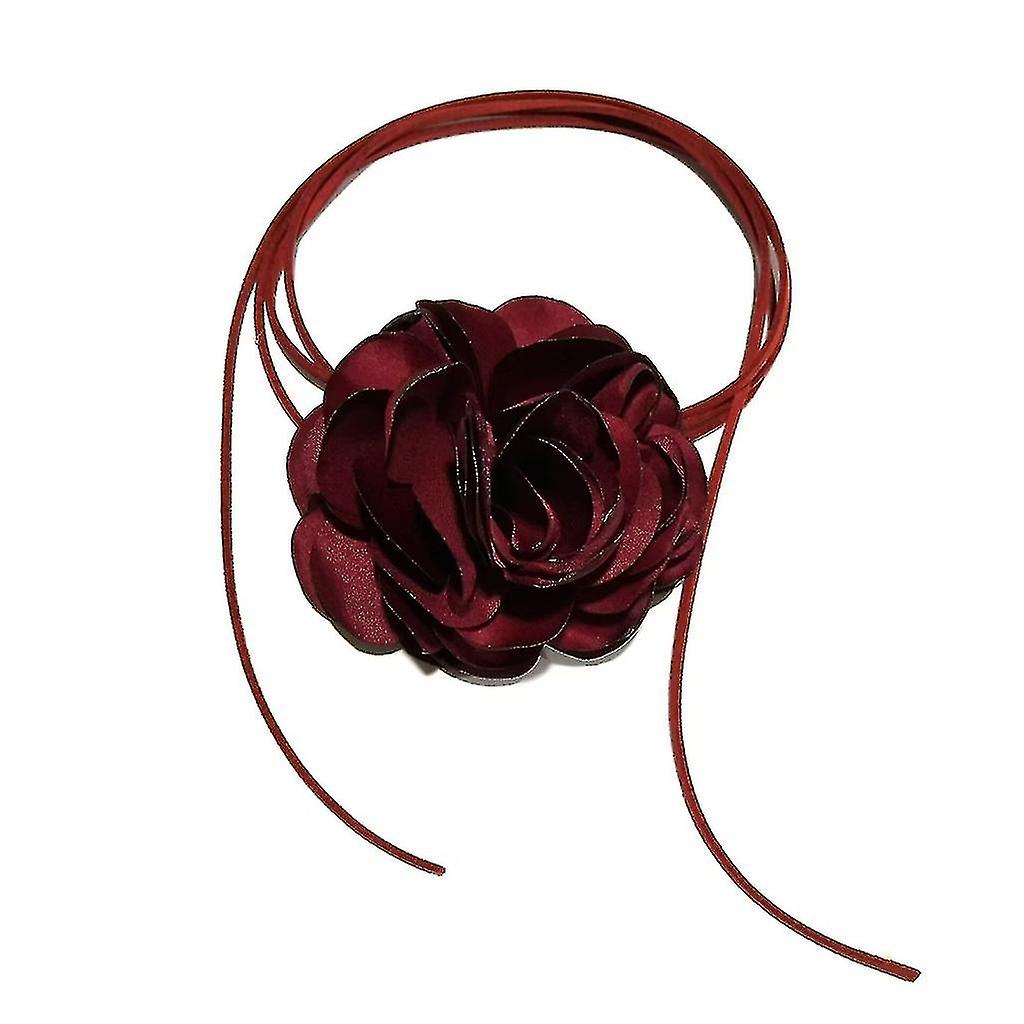 Big Rose Flower Collarbone Chain Simple Adjustable Cloth Necklace Women Choker-YUHAO