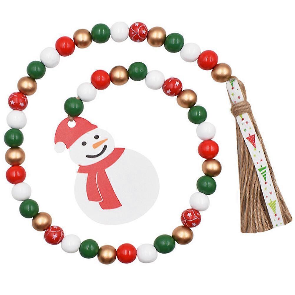 Christmas Wooden Bead Wreath with Tassels Wood Bead Garland Wreath Christmas Decor