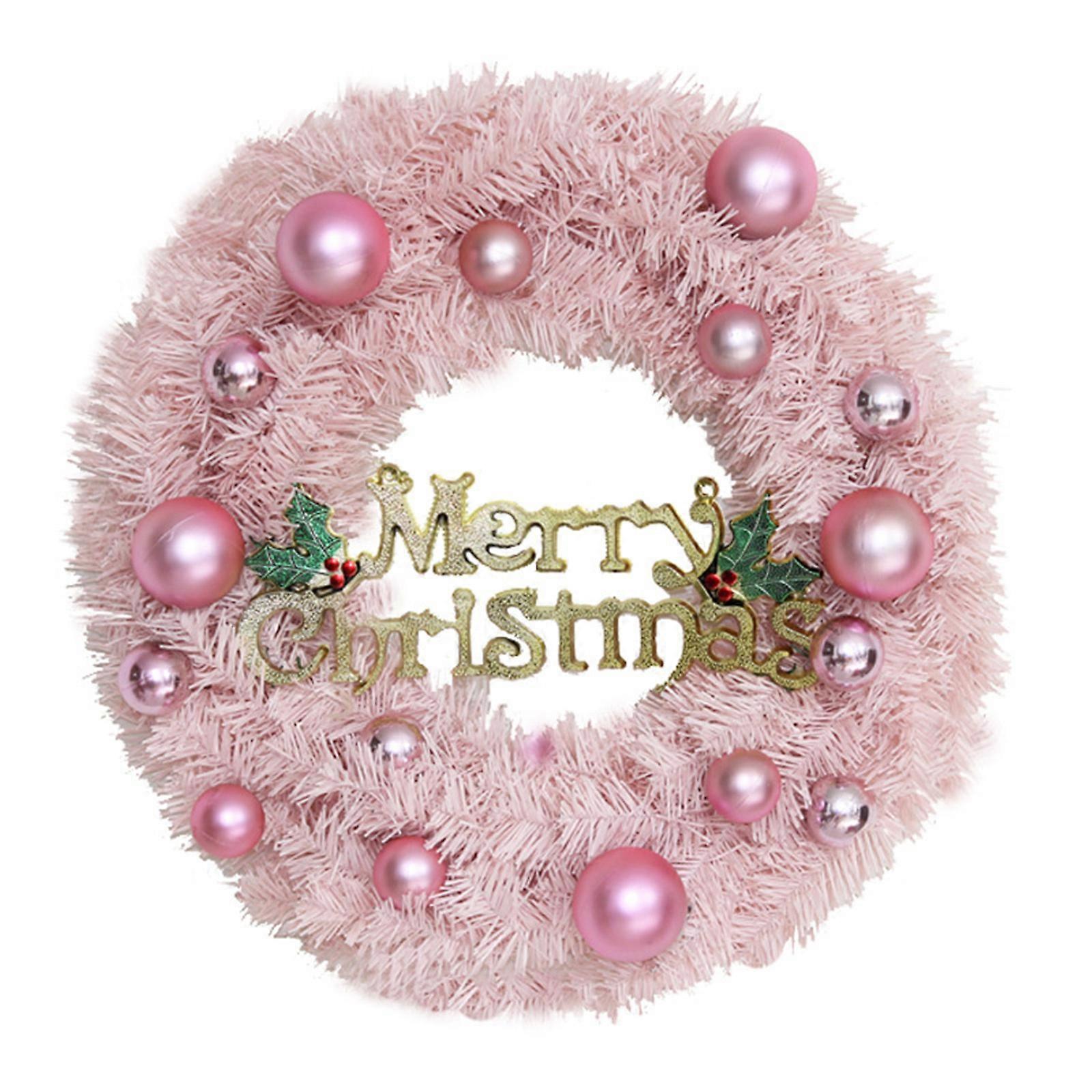 Pink Artificial Christmas Wreath With Ornament Balls Xmas Decoration For Doorways Windows Walls Fireplaces