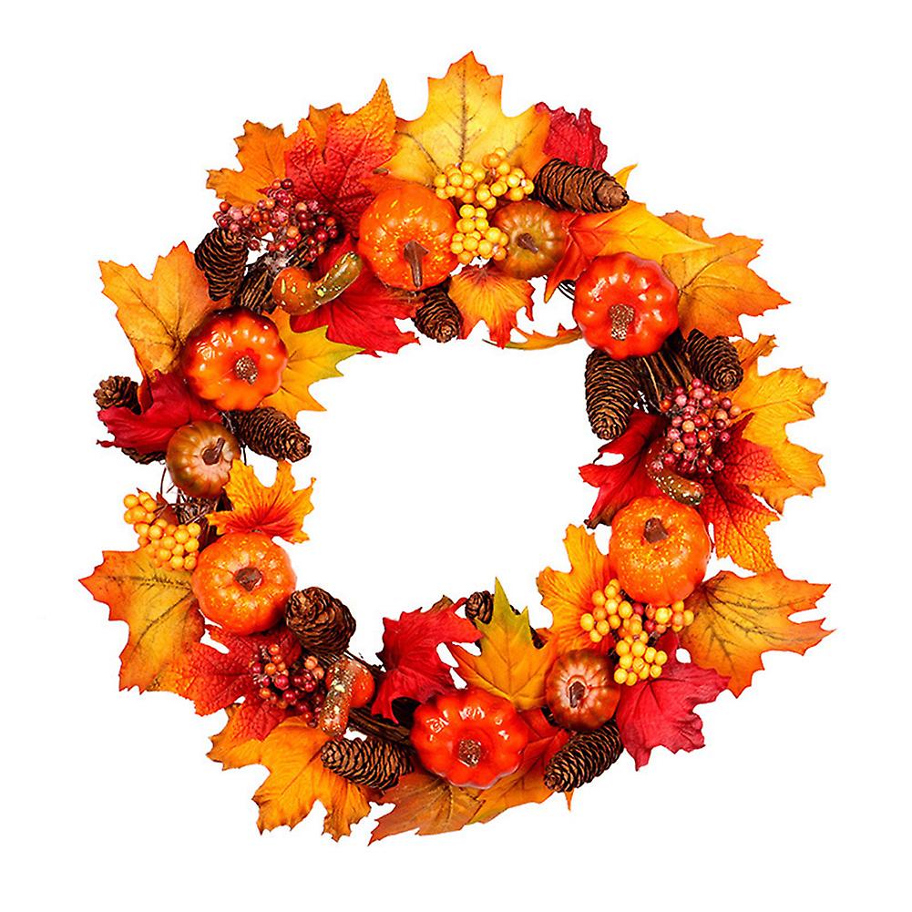 Fall Wreath 17 Inch Front Door Wreath Christmas Wreath with Leaves and Red Berry Wreath for Autumn Halloween