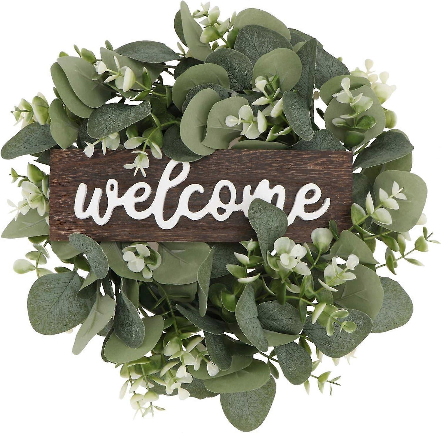 eucalyptus wreath, sunflower wreath, welcome sign