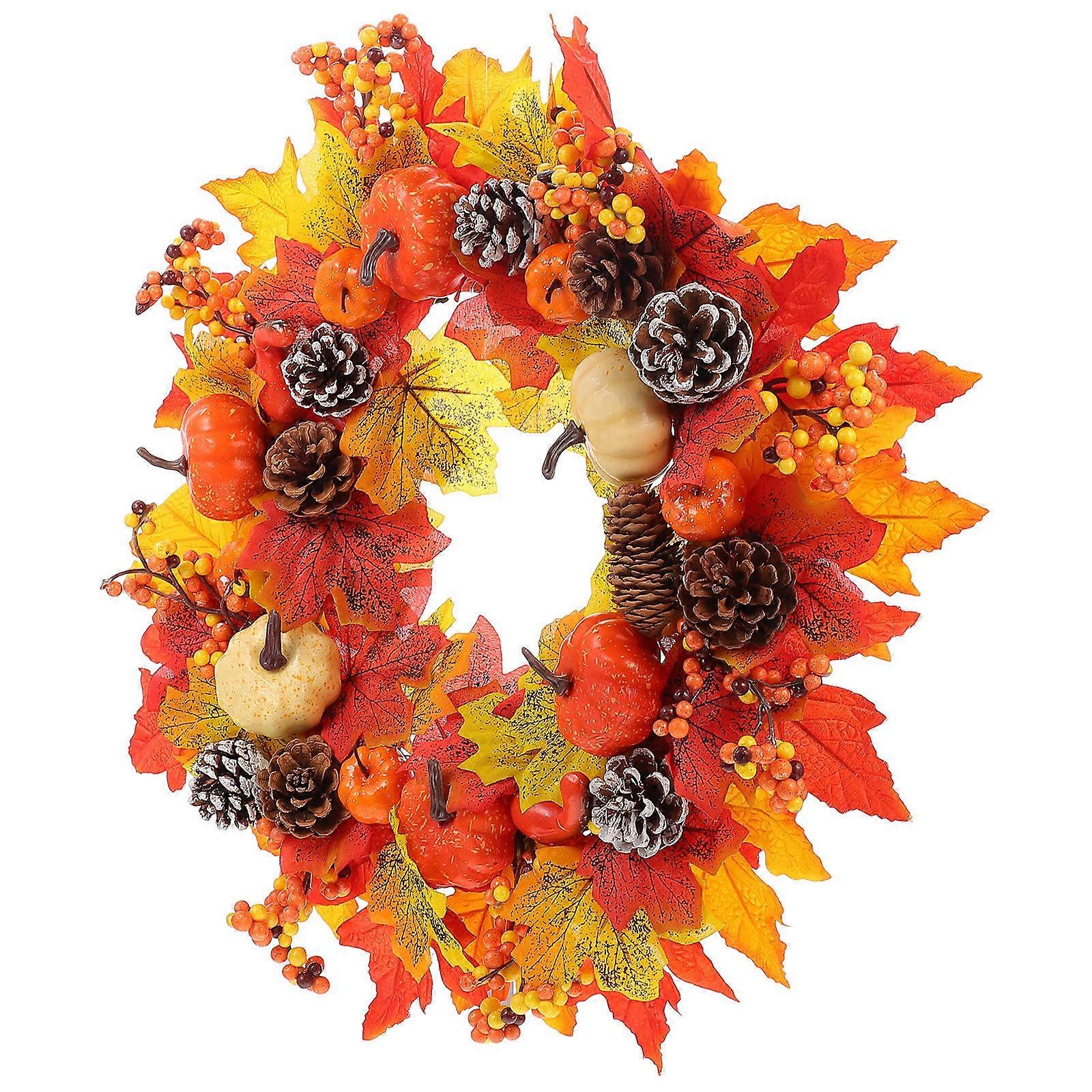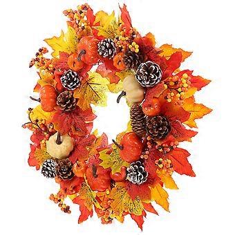 Artificial Thanksgiving Wreath with Pumpkin Candle Holders 2Pcs