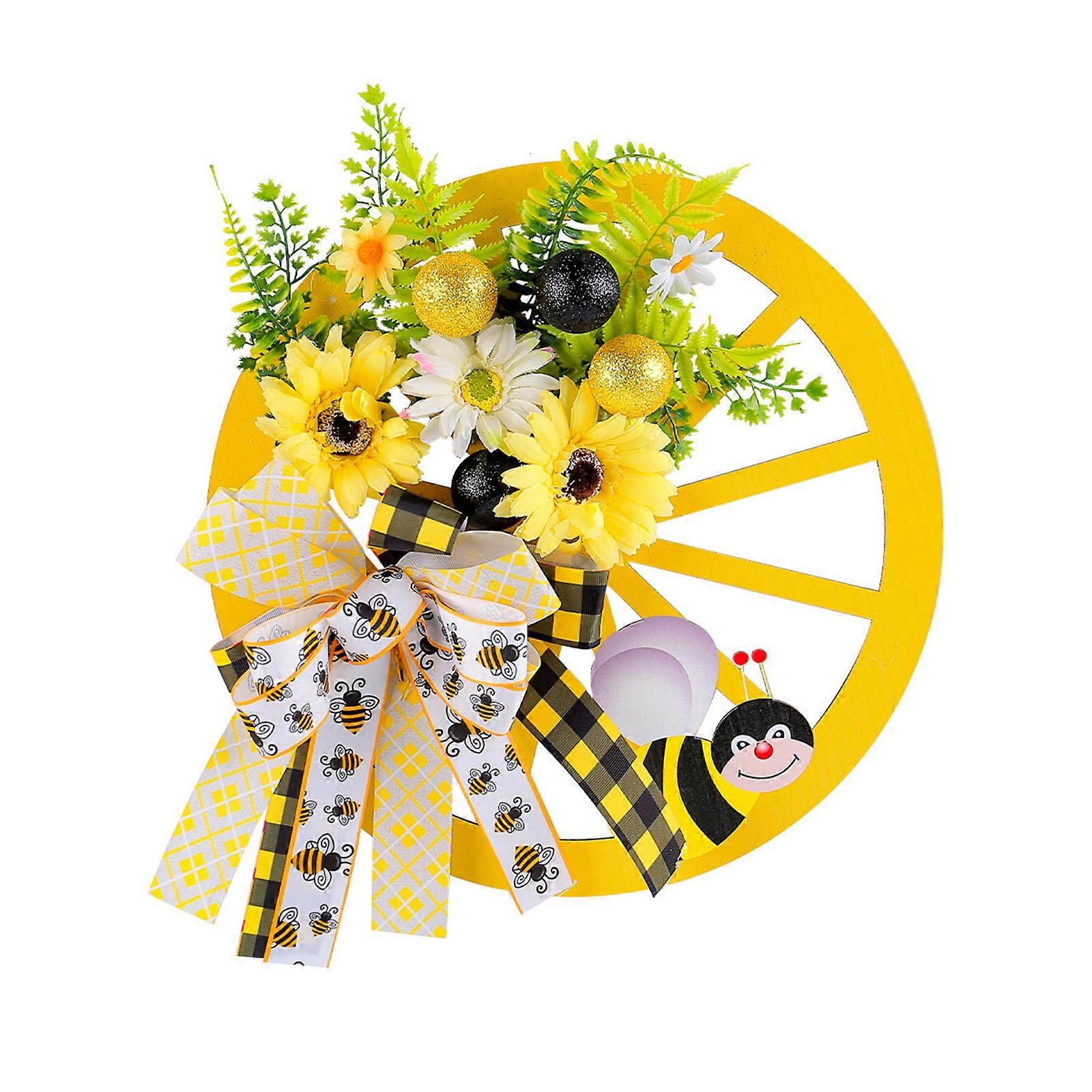 Artificial Spring Wreath with Bowknot Front Door Wreath Sunflowers Wreath with Wheel for Door Garden Wedding Decorations