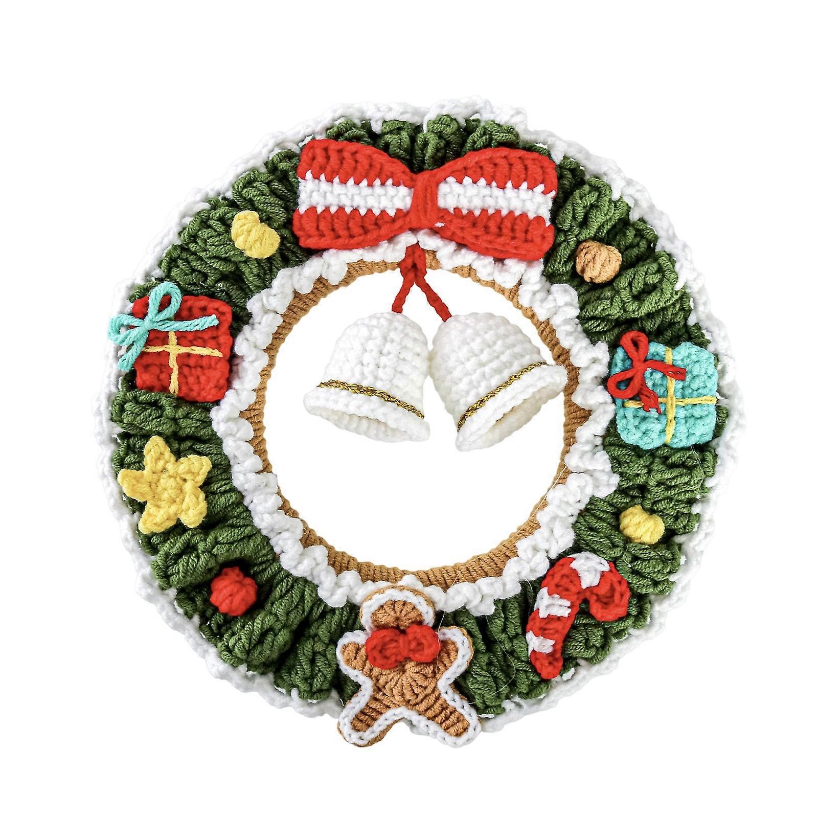 Festival Yarn Wreath Handcrafted Holiday Decors With Bells And Ribbon For Fireplaces Doorway Christmas Display Multicolor