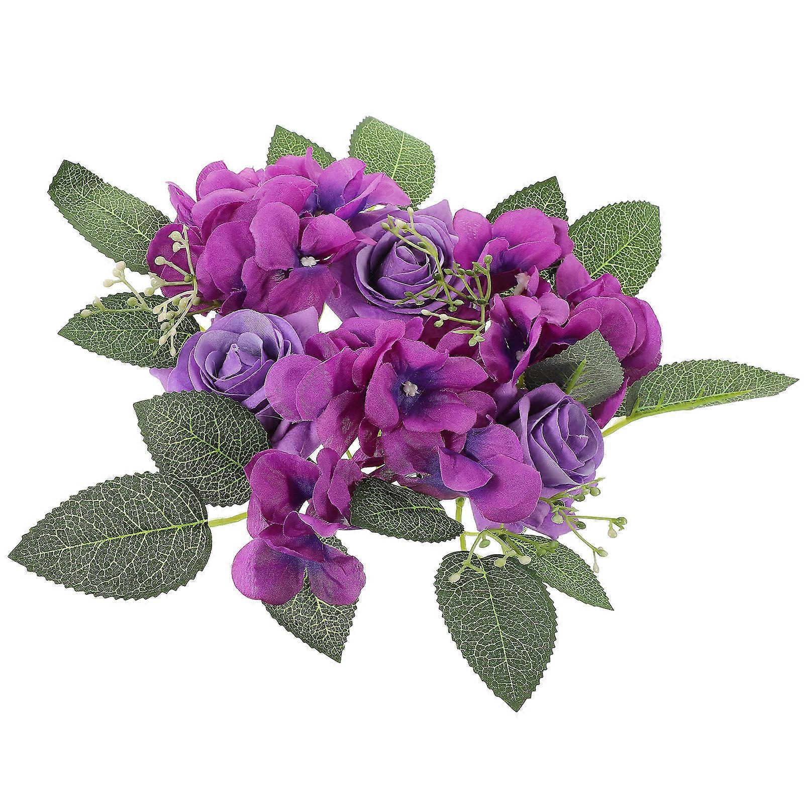 Candle Ring Wreath Purple Cloth Table Decor Artificial Wreath for Decoration Realistic Texture