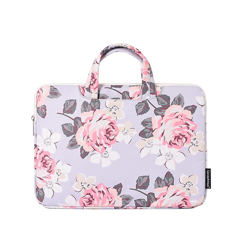 H40-B01 White Rose Pattern Laptop Case Bag 15 Inch Grey