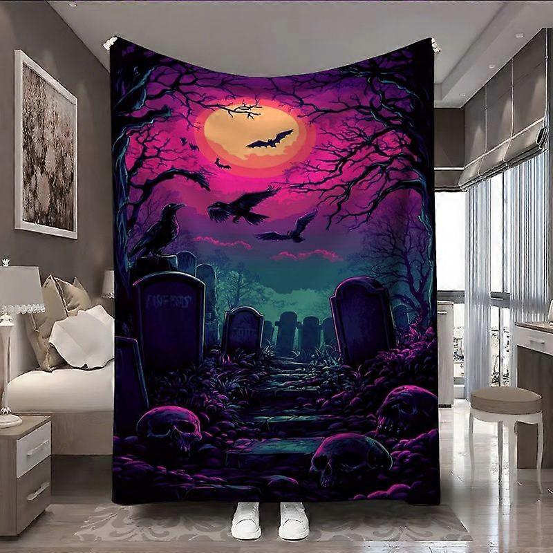 Halloween Cemetery Weird Illustration Theme Pattern Ultra Soft Digital Print Flannel Blanket, Ultra Soft Digital Print F-jghds423