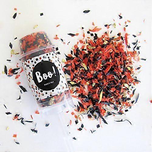 Reusable, food-safe containerThis Halloween comes with a splurge of colorful paper and shimmery foil.1.75"x 7" (including handle)A mix of metallic and paper shapes