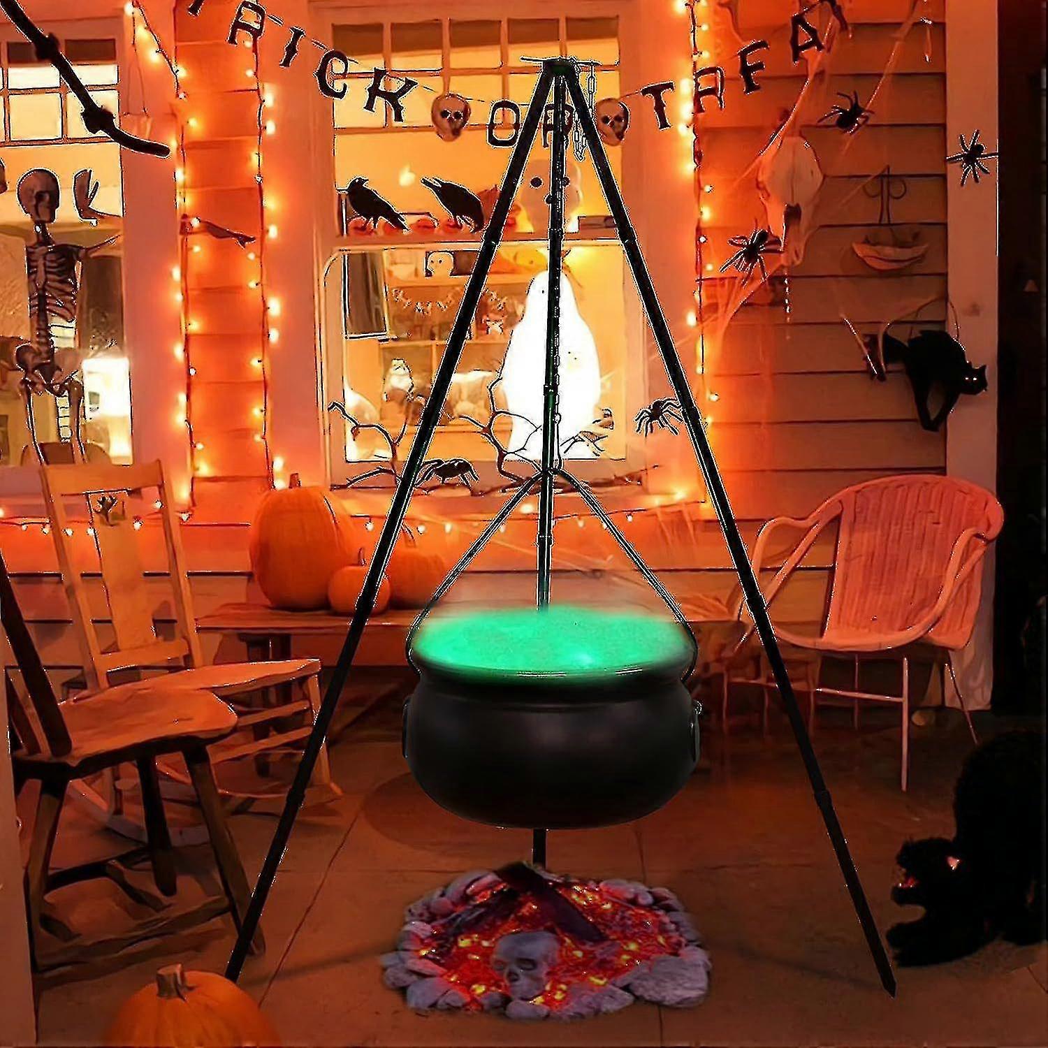 Halloween Decor Outdoor - Large Witches Cauldron On Tripod With Led Light