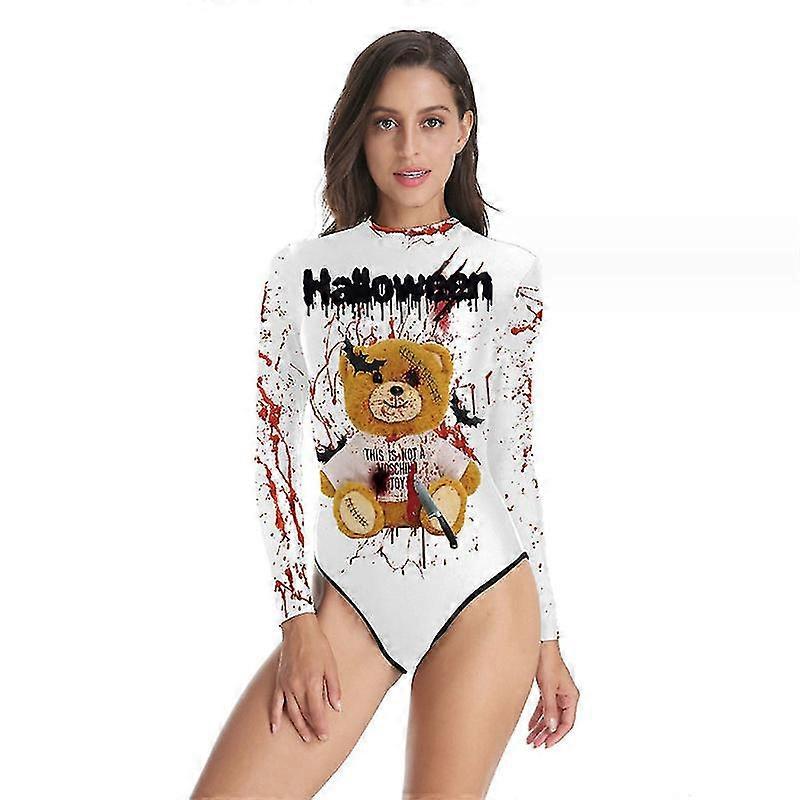 Halloween Women Digital Skeleton Tight One-piece Swimsuit With Zip-back