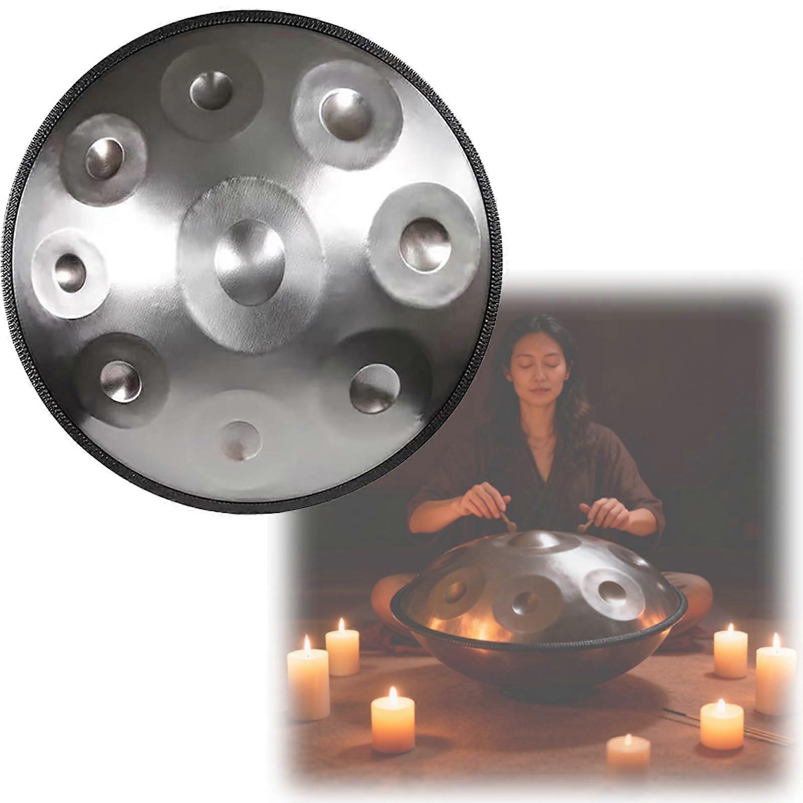 432Hz D Minor Handpan Drum 22 Inch Gold Nitrided Steel with 9 Notes for Meditation and Healing