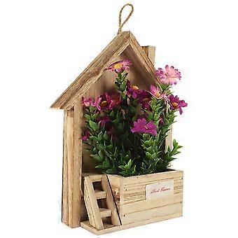 Hanging Artificial Flower Basket with Wooden Holder – Rustic Wall Planter Decor for Home & Garden – Lifelike Floral Ornament for Various Occasions –
