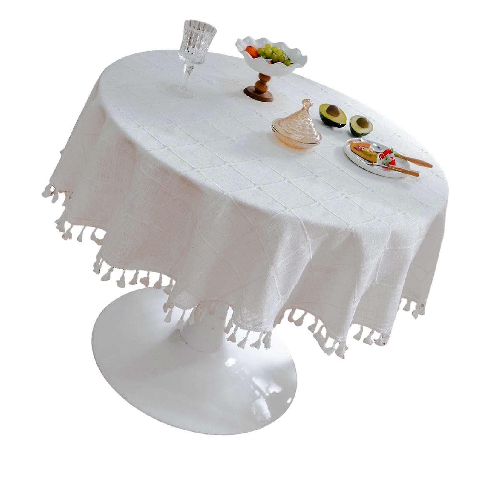 Hard Wearing And Simple Round Tablecloth Polyester Cotton Fabric Against Slip Design 140cm Diameter in Various Hues Milky white