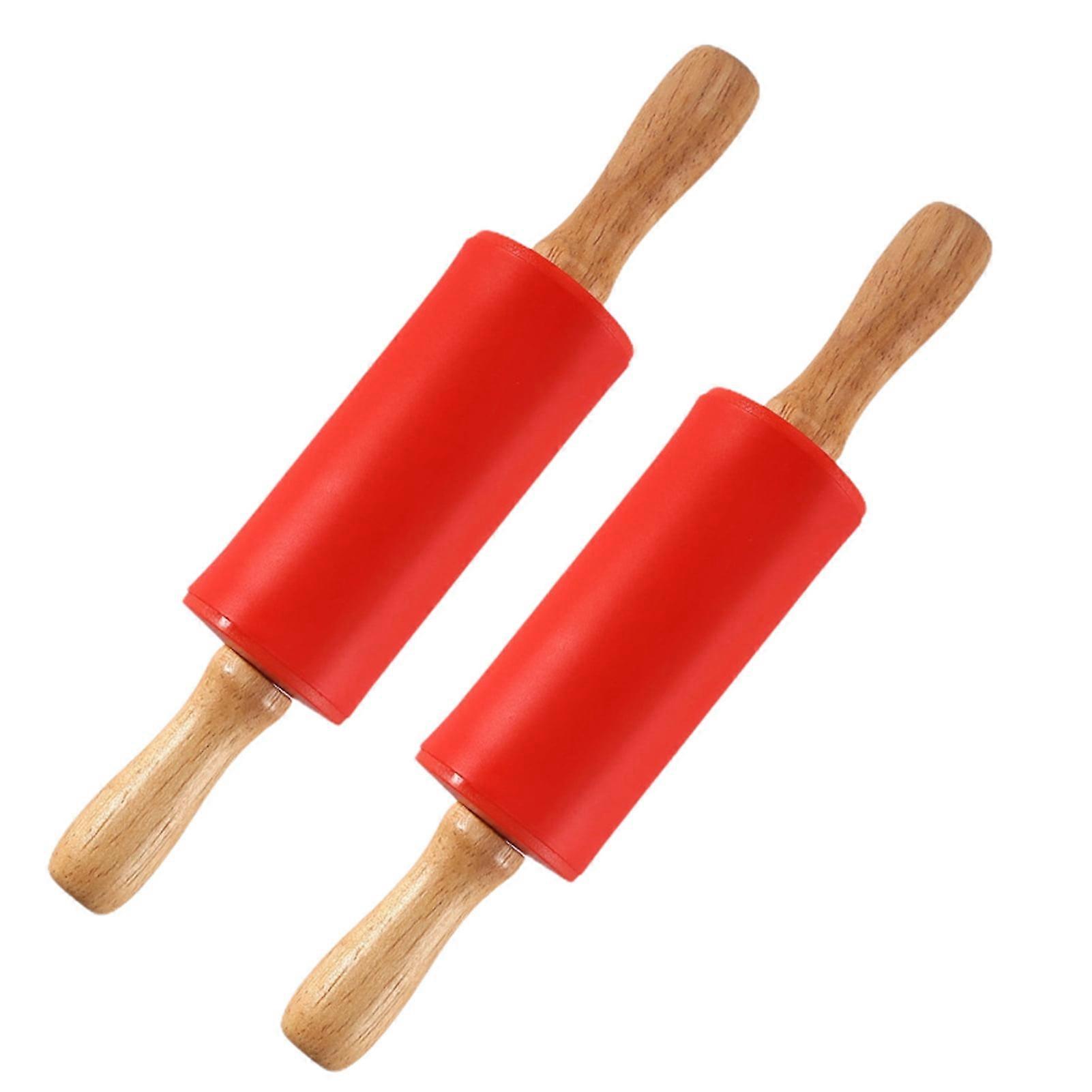 Hariumiu 2 Pcs Silicone Rolling Pins, Food Grade Non-Stick with Wooden Handle, Compatible with DIY Baking & Dumpling Dough