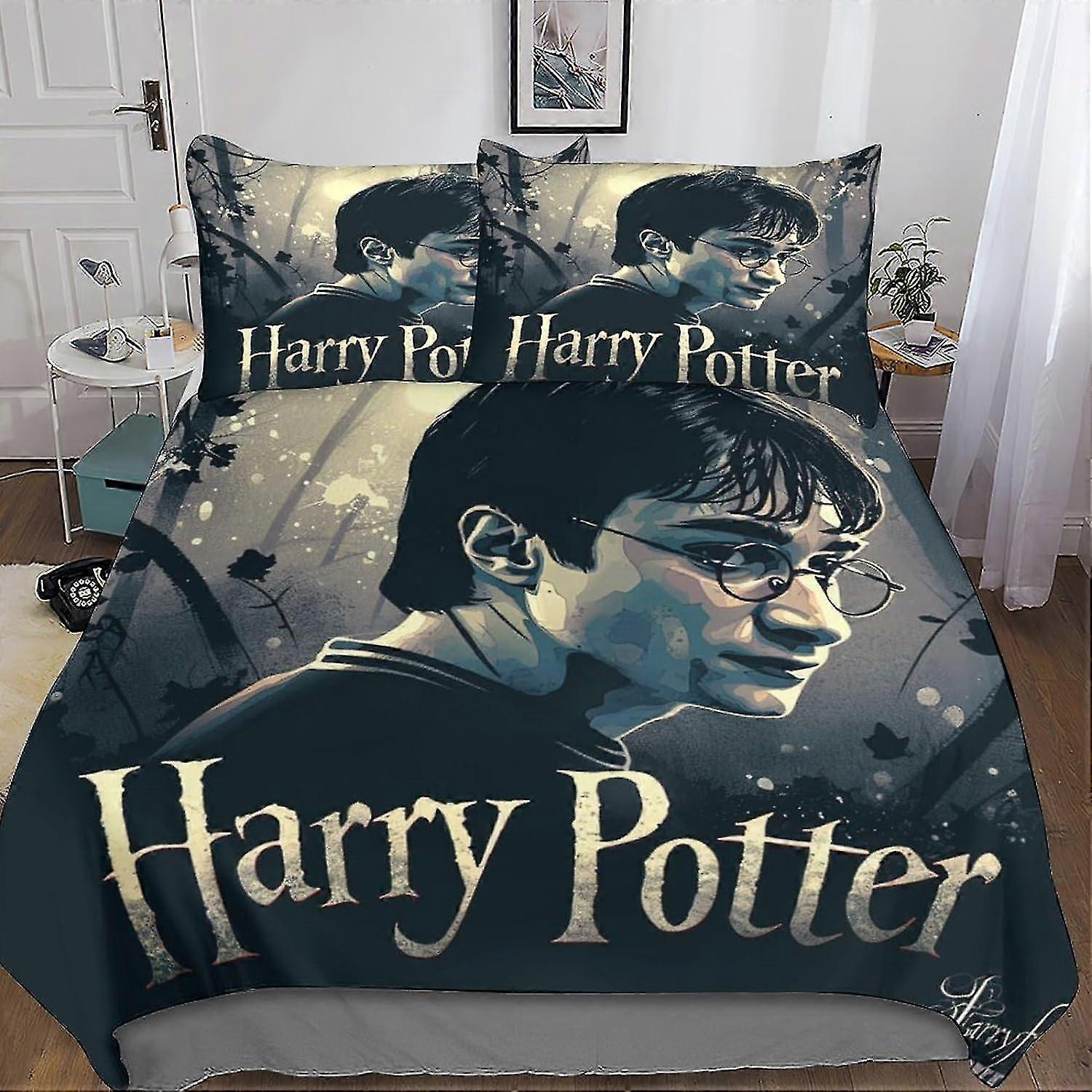 Harry Potter 3PCs Quilt Cover 3D Print Movies Film Duvet Cover Bedding Set with Microfiber Hidden Zipper Closure and Pillowcases for Kids