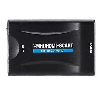 HD 1080P SCART to HDMI-compatible Audio Video Converter with DC Cable For HDTV DVD Television Signal Upscale Converter