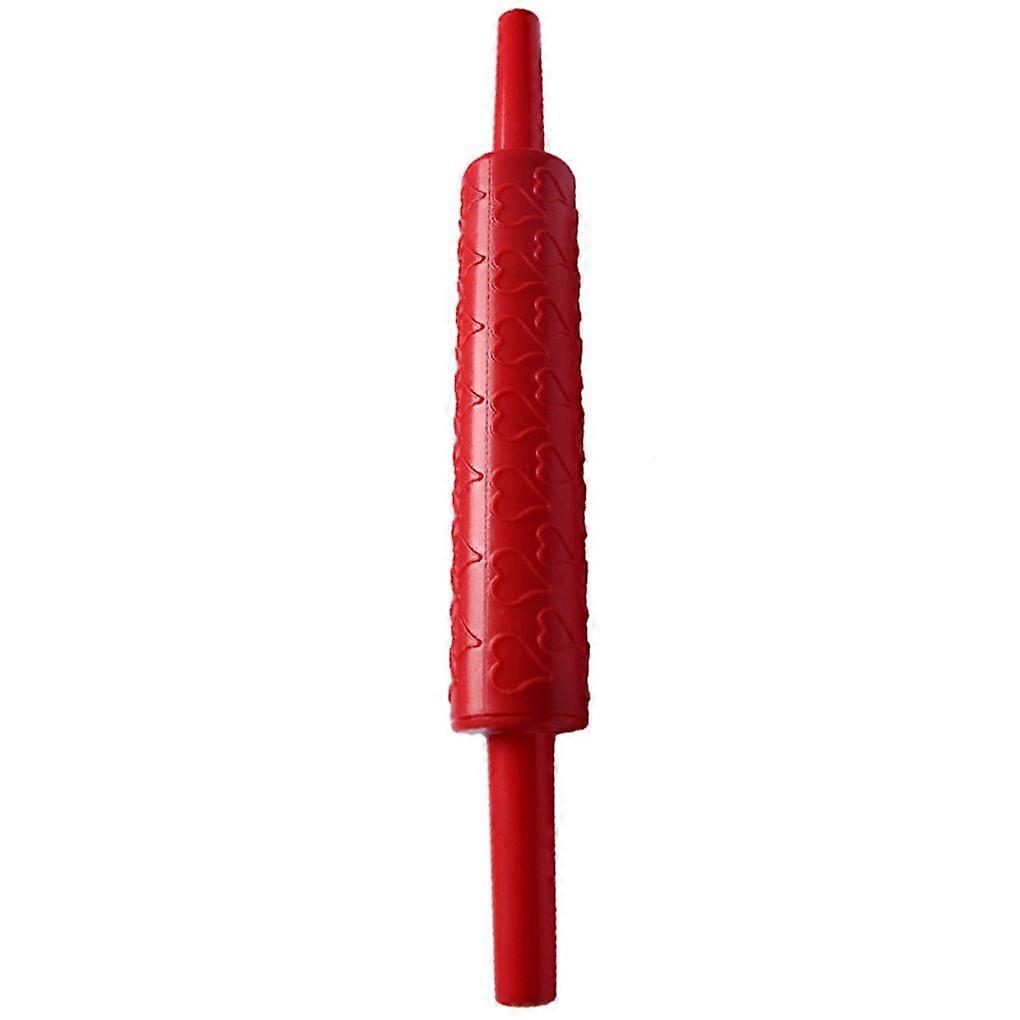 Heart Flower Pattern Rolling Pin Baking Cookies Biscuits Fondant Roller PP Rolling Pin Embossing Mold Red