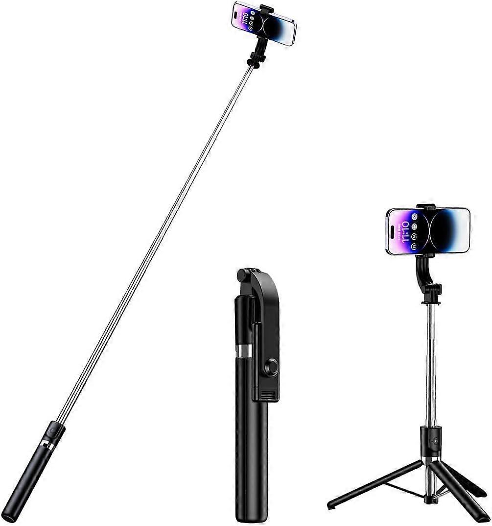 All-in-1 Selfie Stick TripodSelfie stick and tripod are integrated structure, which is easy to carry and use. selfie stick tripod with detachable wireless remote control, makes it easier to take self-portraits, group photos or record videos. The extendable rod is made of durable stainless steel but lightweight.Compatible and Stable ConnectionSelfie stick tripod is perfectly compatible with most 4.7-6.5 inch iOS and Android phones on the market. Its fast and stable connection (up to 10m wireless connection) allows you to take group photos and record a memorable video wherever you are.Adjustable and Rotation AngleThe phone clamps to hold your phone are simple enough, you unfold the two small pads and extend the spring-loaded end of the clamp to hold your phone, very sturdy and keeps your phone nice and tight. 245 rotation head allows you to find your favorite shooting angle by simply rotating the knob to better meet different needs.Wide CompatibilitySmall, stable and foldable, the extendable phone tripod allows for multi-angle shooting for a more versatile composition, great for when you want to capture photos and videos during travel and outings or for live recordings of your cooking or fitness tutorials. and is compatible with iPhone 15/14/13 Pro, Android.Extendable and PortableIt can be extended from 11.5 to 170 cm to meet your needs. Adjust the length of the rod as needed for easy portability. It is also a good choice to use as a phone holder to video chat with friends.