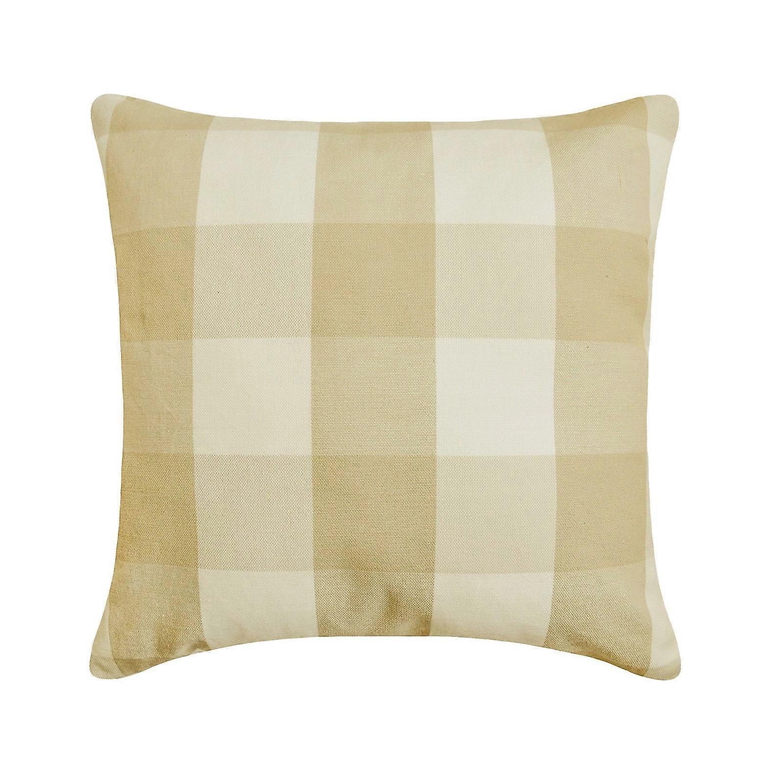 HomeCentric Pillow Case Zip, Beige Ivory White 24x24 inch (60x60 cm), Pack of 2 - Cotton Couch Cushion Cover, Gingham Plaid