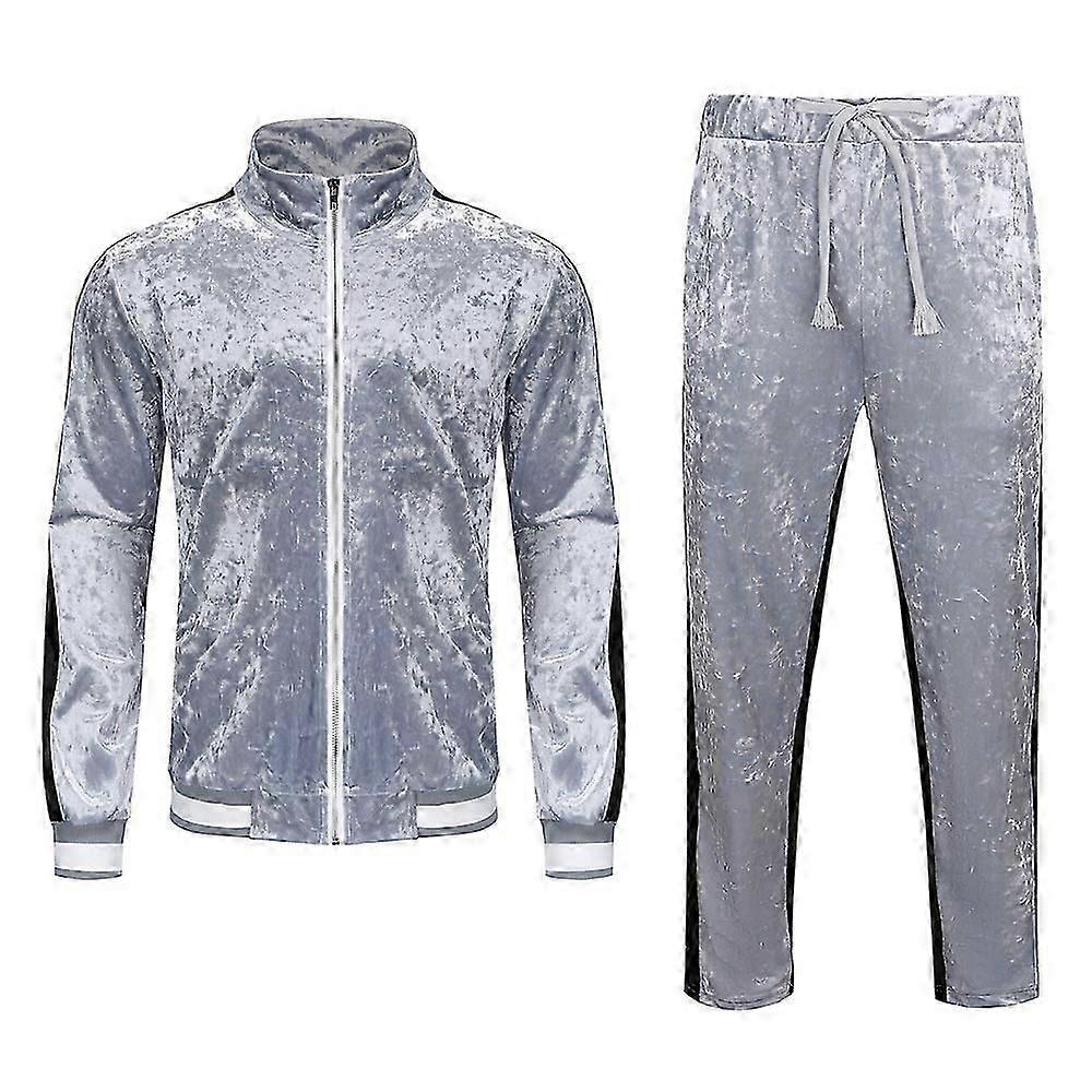 Men 2 Piece Velvet Set Zipper Jacket Elastic Pants