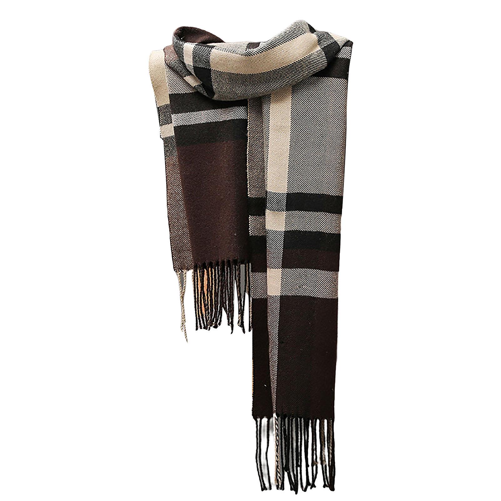 Men Scarf British Style Classic Plaid Fringed Tassels Soft Keep Warm Faux Cashmere Autumn Winter Adults Long Scarf for Riding