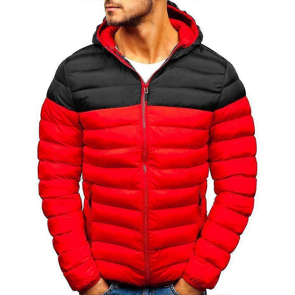 Men Colorblock Quilted Jacket Casual Outerwear Winter Warm Hooded Padded Coat