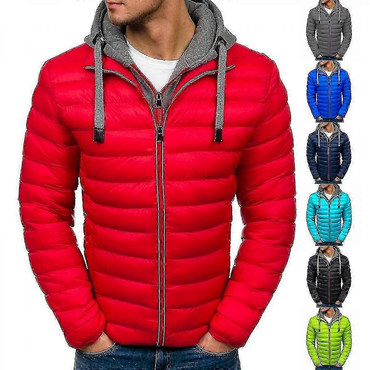 Men's Packable Lightweight Water-resistant Puffer Jacket Winter Cotton Hooded Coat Jacket Casual Solid Color Men Outwear Clothing