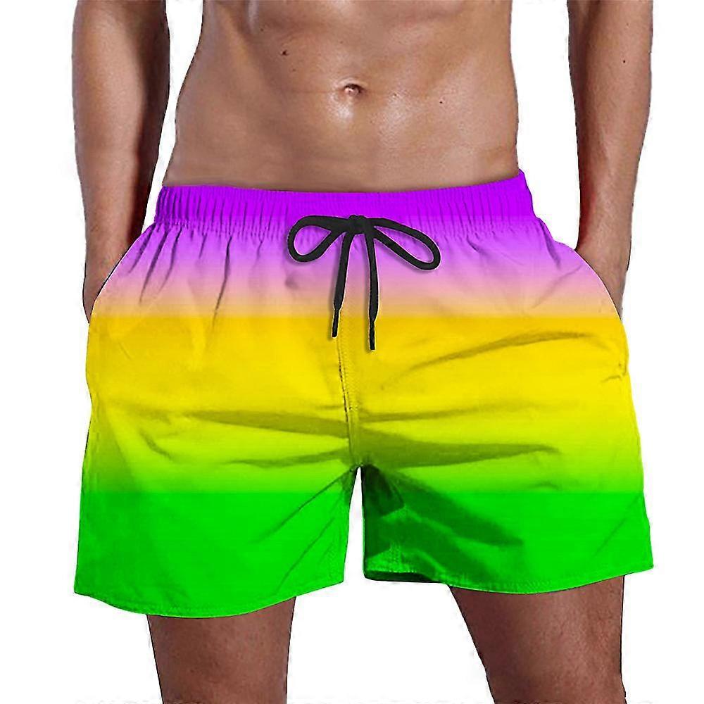 Men's Gradient Swim Trunks Elastic Waist Drawstring Quick Dry Swim Shorts Funny Beach Shorts