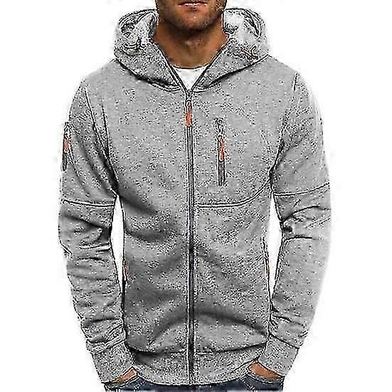 Men Fall Winter Hoodie Loose Zip-up Long Sleeves Zipper Pockets Hooded Cardigan Thin Pure Color Daily