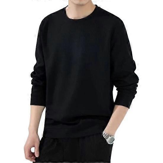 Men Fall Spring Top Solid Color Round Neck Long Sleeve Loose Thick Soft Pullover Casual Mid Length Simple Style Elastic Men Sweatshirt