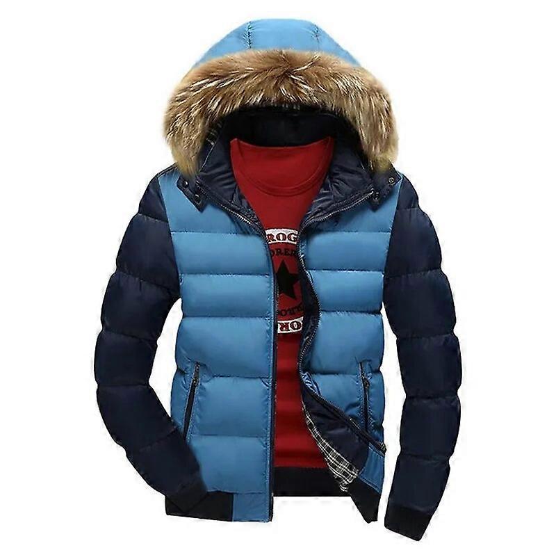 Men Parkas Winter Fashion Thick Warm Parka Jacket Cotton-Padded Casual Bomber Jacket Hoody with Fur Park MWM006 Sblue
