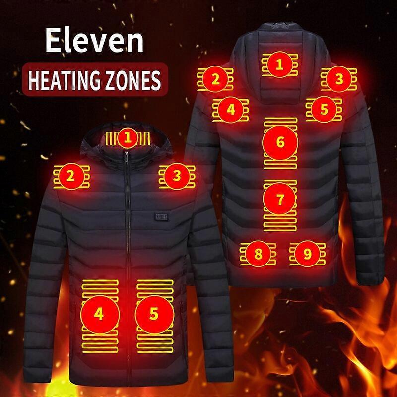Men Winte Double switch 11 zone heating USB Heating Jackets Smart Thermostat Hooded Heated Clothing Warm Jackets