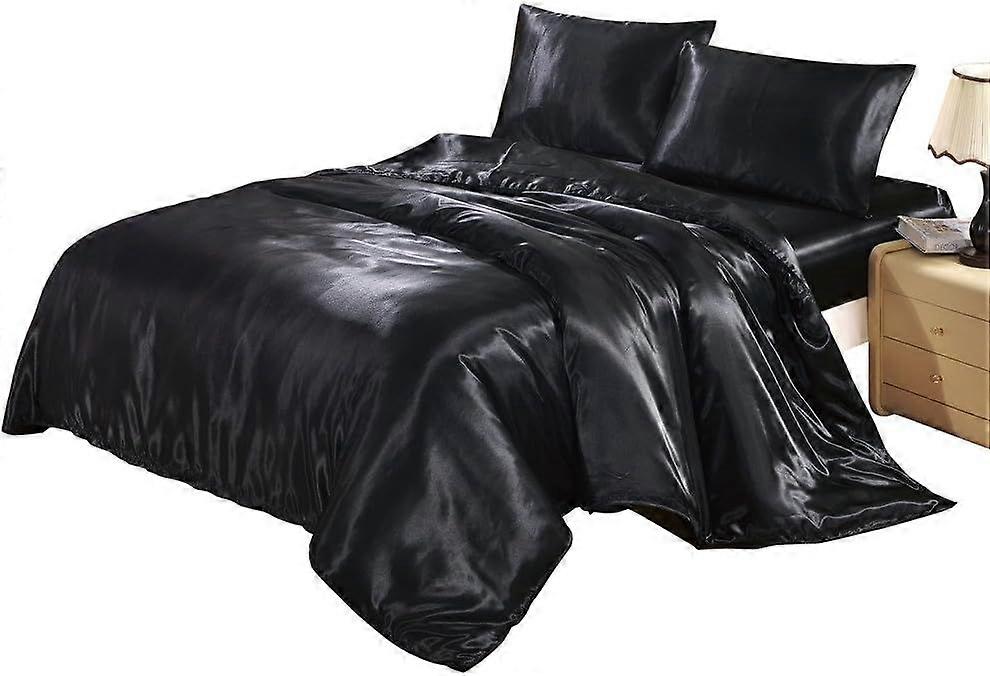 Hotel Quality Solid Silver Black Duvet Cover Set Twin/Single Size Silk Like Satin Bedding