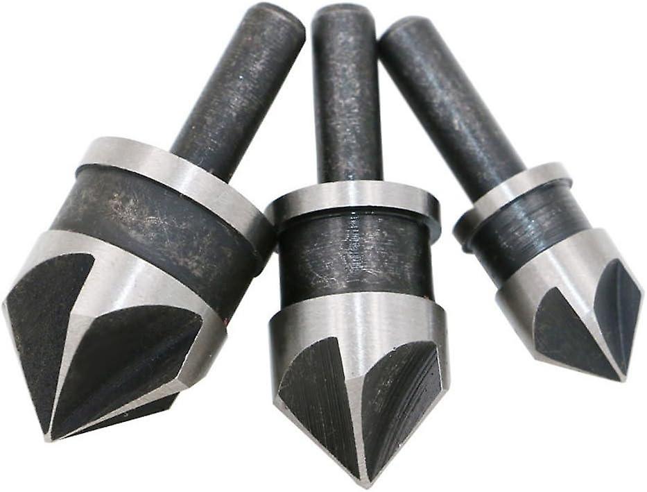 HSS Countersink 3 Piece Countersink 5 Flute Countersink Set 12 mm/16 mm/19 mm Countersink Drill Bit