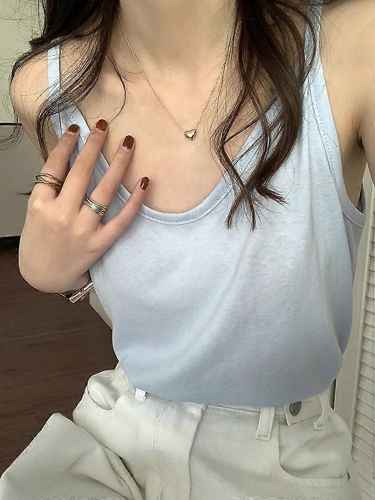 Huang Zheng solid color V-neck vest for women in 2022 summer with small suspenders and sleeveless short top 122sz8164 outside