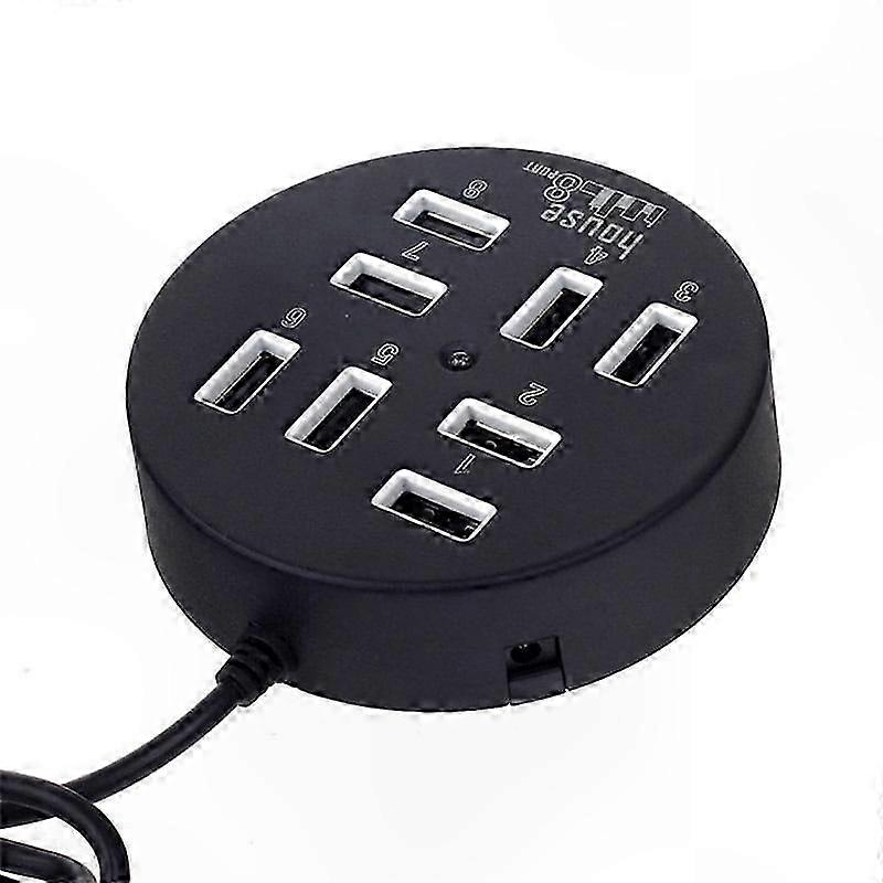 8-Port USB 2.0 Hub with LED Indicator for Data Transfer and Charging-Compatible with Phones and USB Devices Round Multi-Port Adapter